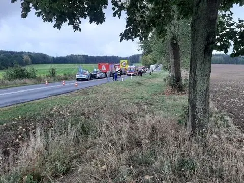 Droga w miejscu wypadku jest zablokowana. Policjanci wykonują oględziny. Utrudnienia potrwają mniej więcej do godz. 22.00.