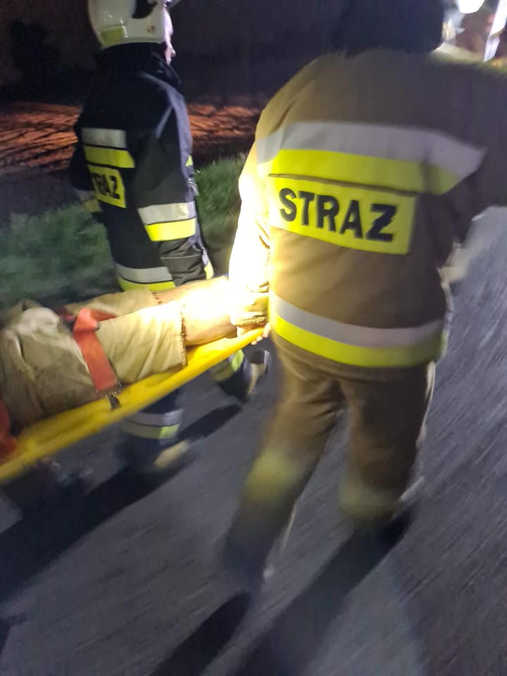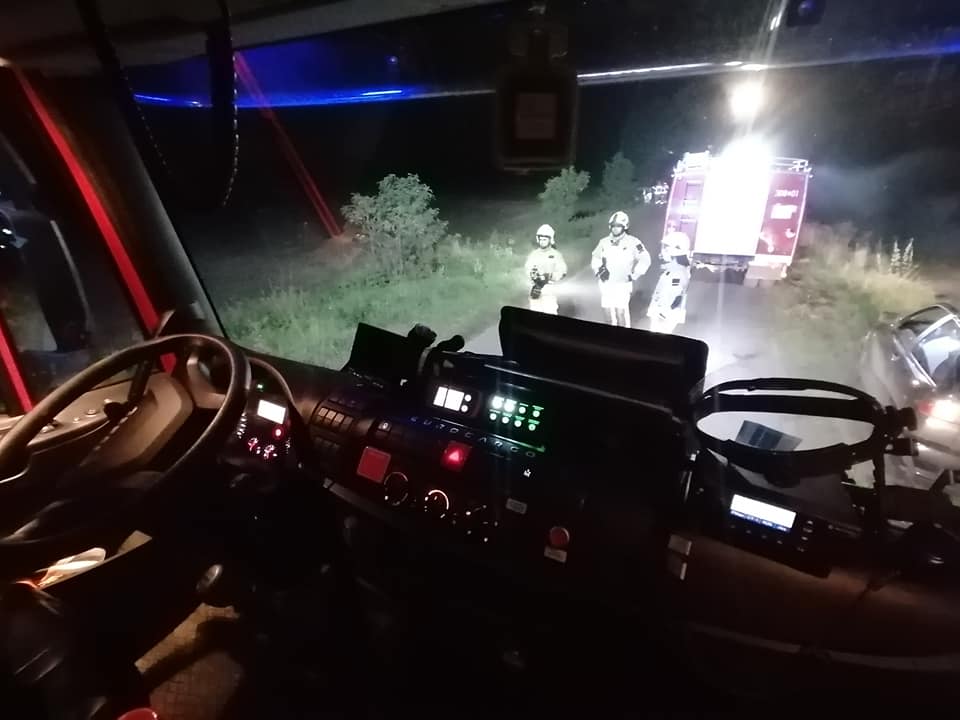 Strażacy zaczęli przeszukiwać okolice wypadku. Jeden z mężczyzn ze skody został odnaleziony około 400 m w polu. Leżał. Pomocy udzielili mu strażacy i na noszach przenieśli do karetki pogotowia ratunkowego. Drugi z mężczyzn z auta został złapany około 800 m od miejsca wypadku. Przyczyny i okoliczności wypadku wyjaśnia policja.