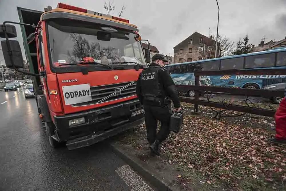 Do wypadu doszło około godz. 9.30. Kierujący śmieciarką jechał al. Konstytucji 3 Maja w kierunku ul. Długiej. Nie zauważył hamującej przed nim dacii. Zaczął hamować, ale było już za późno. Śmieciarka mocno uderzyła w tył dacii. – Na drodze jest ślisko – przyznał kierujący śmieciarką.