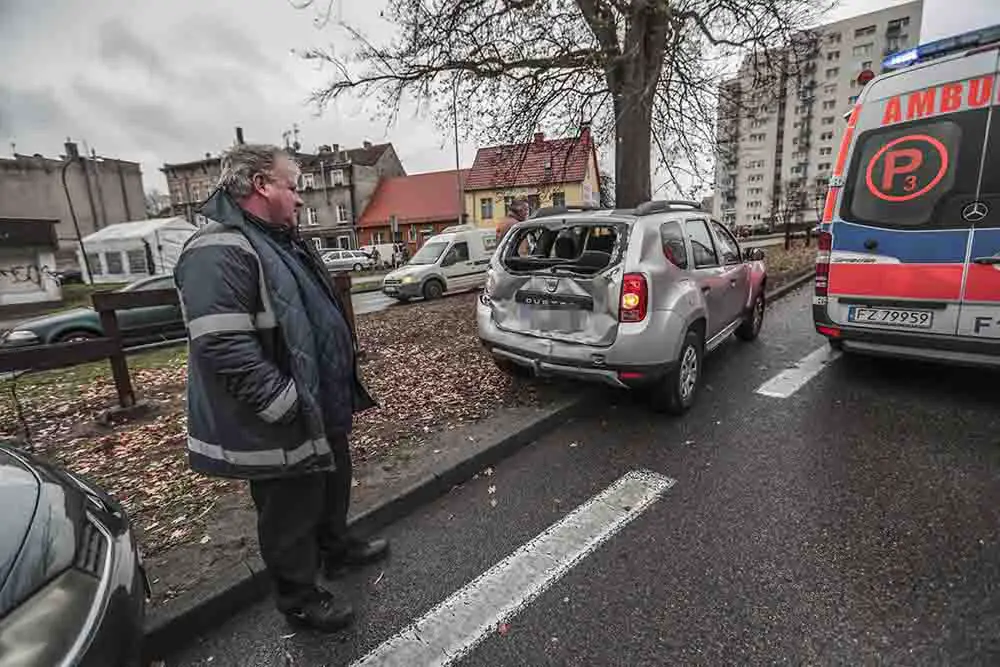 Na miejsce przyjechała ekipa karetki pogotowia ratunkowego oraz patrol zielonogórskiej policji. Pasażerka z dacii została zabrana do karetki.