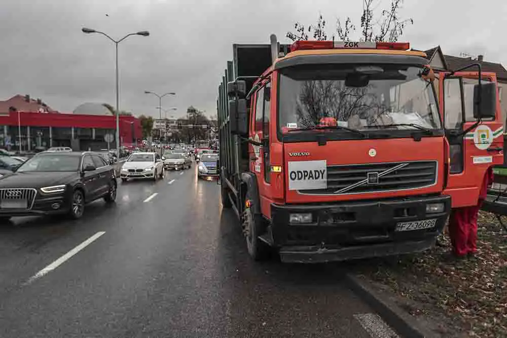 Do wypadku doszło we wtorek, 4 grudnia, na al. Konstytucji 3 Maja. Kierujący śmieciarką uderzył w tył dacii. Kobietą zajęło się pogotowie ratunkowe.