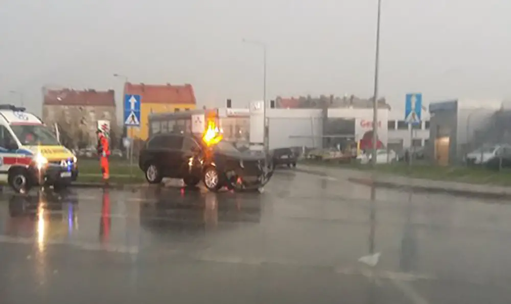 Do wypadku doszło podczas silnego deszczu. Kierujący volvo wymusił pierwszeństwo i uderzył w audi. Na miejsce przyjechały wozy straży pożarnej, karetki pogotowia ratunkowego i gorzowska policja.