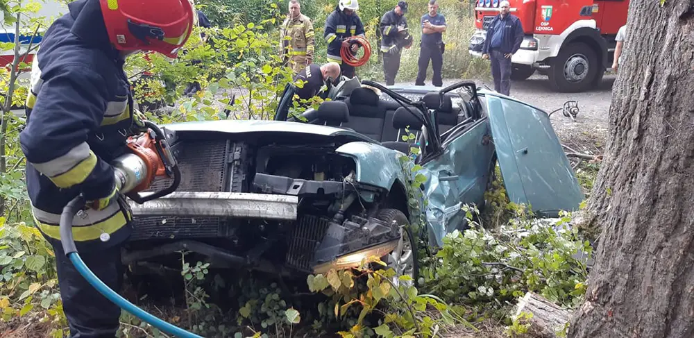 Do wypadku doszło w czwartek, 12 września, w rejonie ul. Leśnej w Łęknicy. Na drodze gruntowej kierujący volkswagenem passatem wpadł w poślizg i dachem uderzył w drzewo.
