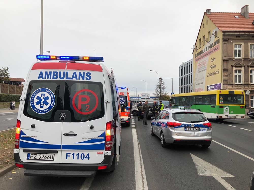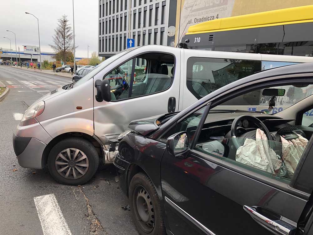 Do wypadku doszło ok. godz. 16.20, na pasach ruchu prowadzących w kierunku ronda PCK. Peugeot uderzył w bok opla busa do przewozu osób niepełnosprawnych. Na miejscu są już służby ratunkowe. Miejsce zderzenia zabezpiecza policja. Dojechały też dwie karetki pogotowia ratunkowego.