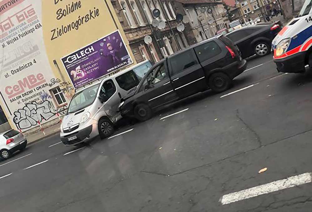 Do wypadku doszło w piątek, 19 października, na skrzyżowaniu ul. Wojska Polskiego z ul. Wandy. Zderzyły się opel bus do przewozu osób niepełnosprawnych i peugeot. Na miejscu jest policja i dwie karetki.