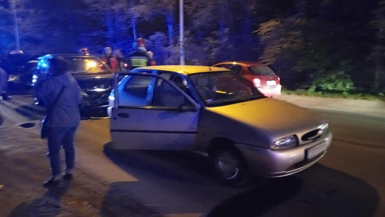 Kierujący skodą z dużą siłą uderzył w tył mercedesa. Siła była tak duża, że mercedes uderzył w forda, a ten uderzył jeszcze w tył volkswagena.