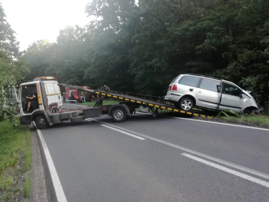 Kierujący volkswagenem podczas jazdy wpadł w poślizg. Samochód wypadł z drogi i z dużą siłą uderzył przodem w drzewo. Na miejsce wypadku przyjechały służby ratunkowe. Kierujący volkswagenem został zabrany do szpitala przez ekipę karetki pogotowia ratunkowego.