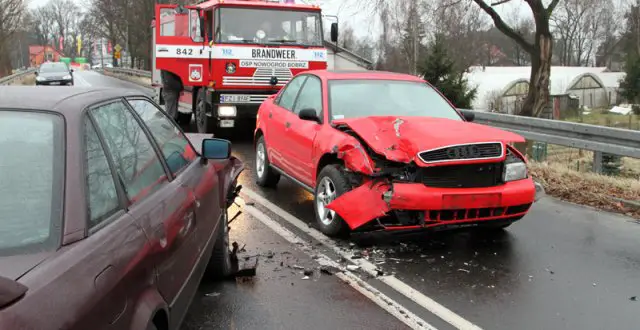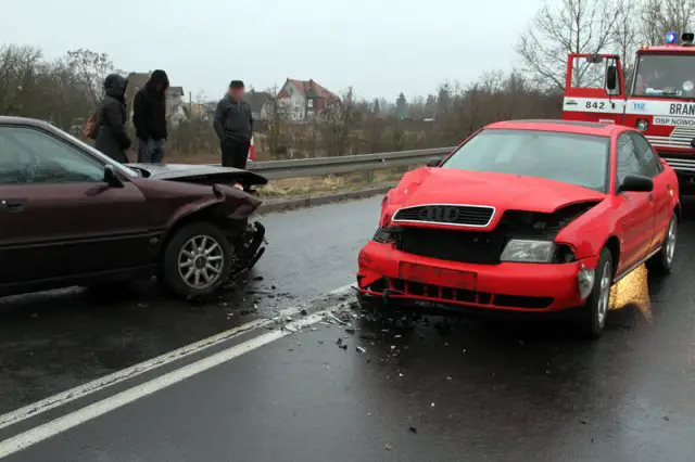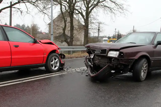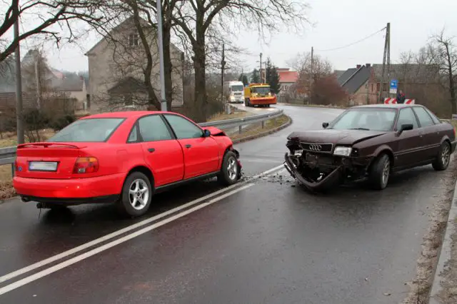 Ze wstępnych ustaleń wynika, że kierowca ciemnego audi jechał za szybko. Na śliskiej drodze wpadł w poślizg, wyjechał na przeciwległy pas ruchu i tam czołowo uderzył w czerwone audi. Na trasie jest lodowisko. Jest tak ślisko, że ciężko jest chodzić po asfalcie.