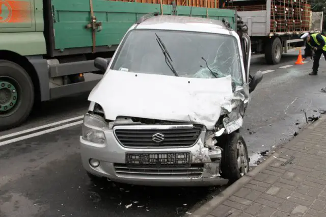 W piątek kierowca suzuki wjechał prosto pod busa. Bus po zderzeniu z suzuki wypadł z drogi i uszkodził płot posesji w Ochli. Kierowca suzuki został przewieziony do szpitala.