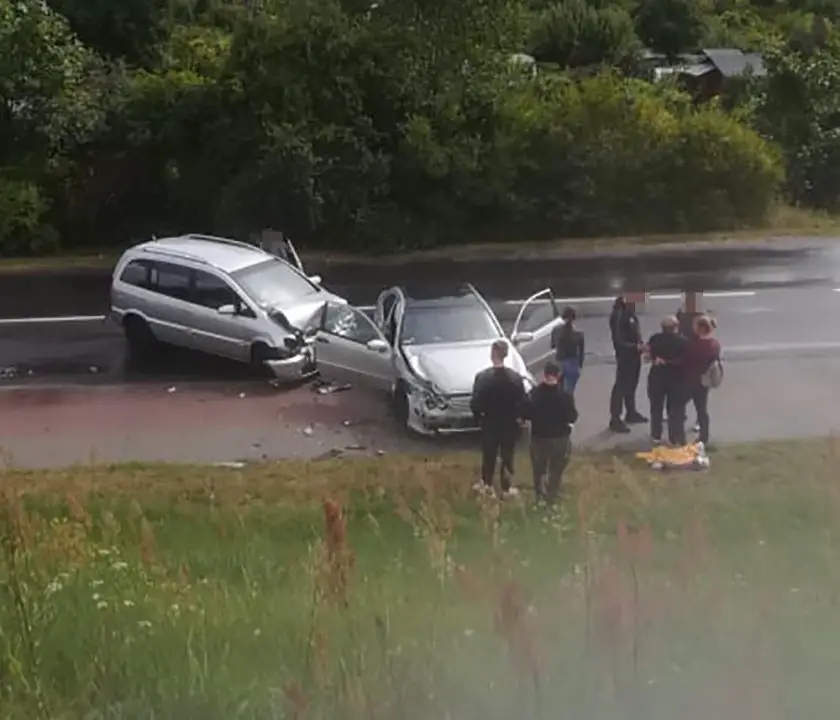 Doszło do czołowego zderzenia. Na miejsce dojechały służby ratunkowe. Kobieta z opla została przewieziona do szpitala.
