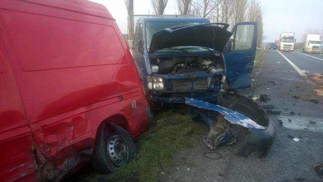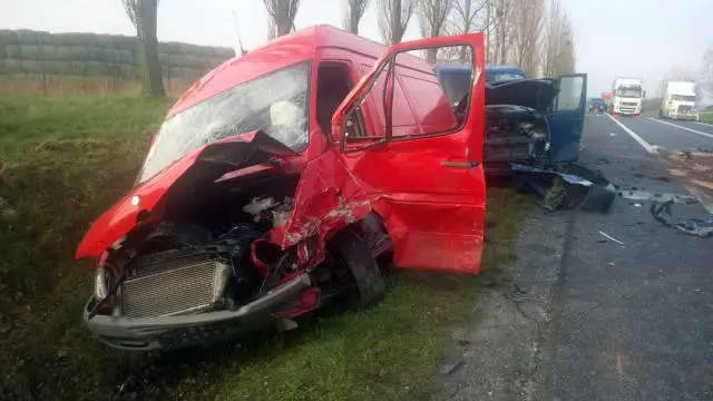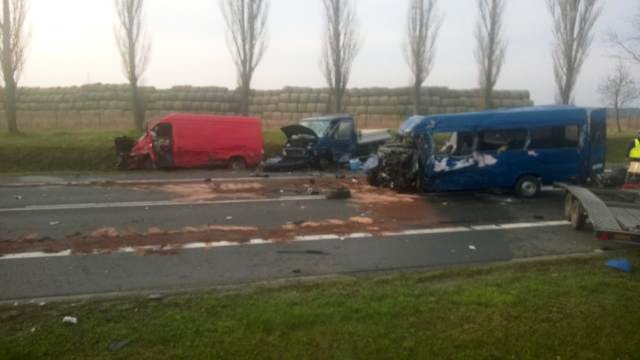 Do wypadku doszło w środę o godz. 5.40. Bus jadący w kierunku granicy zderzył się czołowo z ciężarową scanią. Na auta wjechała laweta do przewozu samochodów. Dziewięć osób zostało rannych.