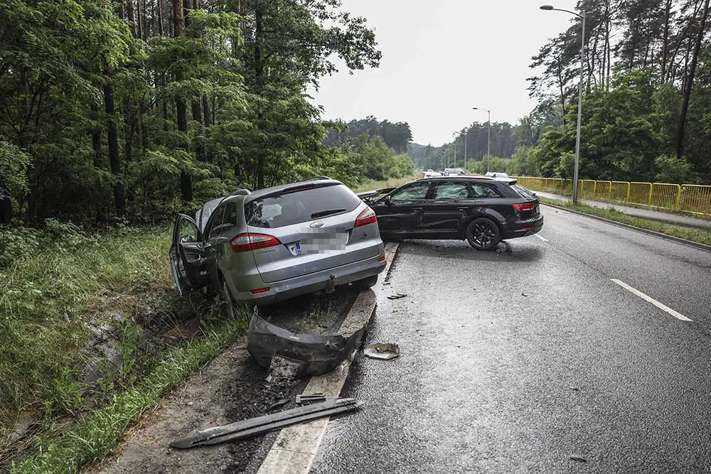 Do wypadku doszło w poniedziałek, 21 czerwca, na ul Pileckiego. Czołowo zderzyły się ford i audi. Do szpitala trafiły dwie ranne osoby.