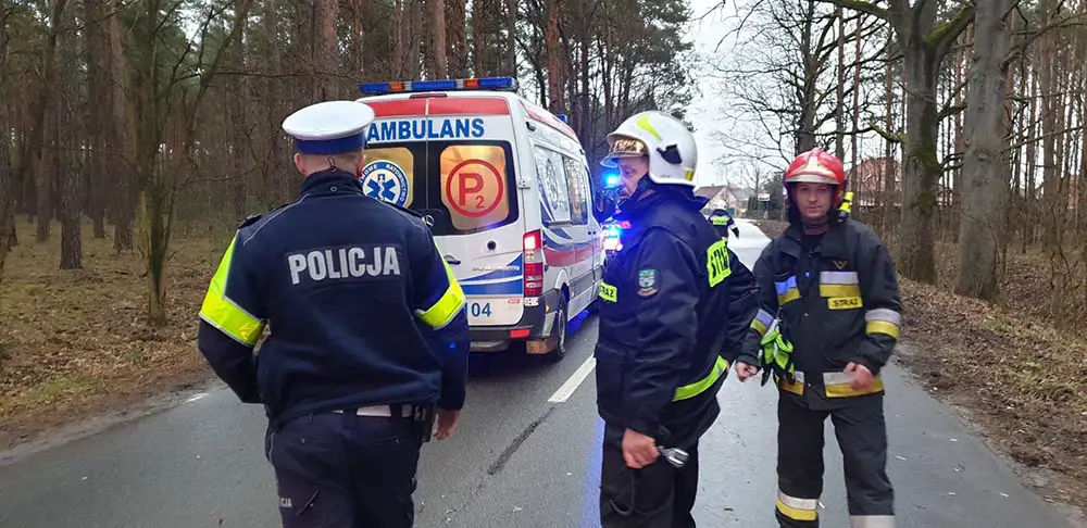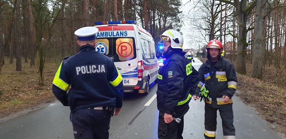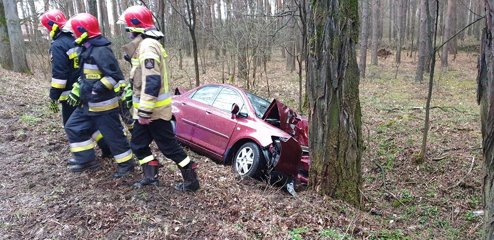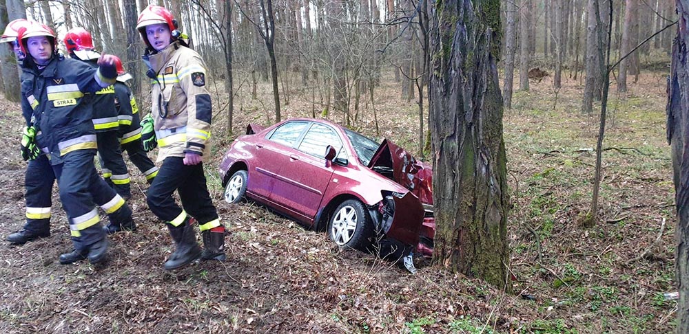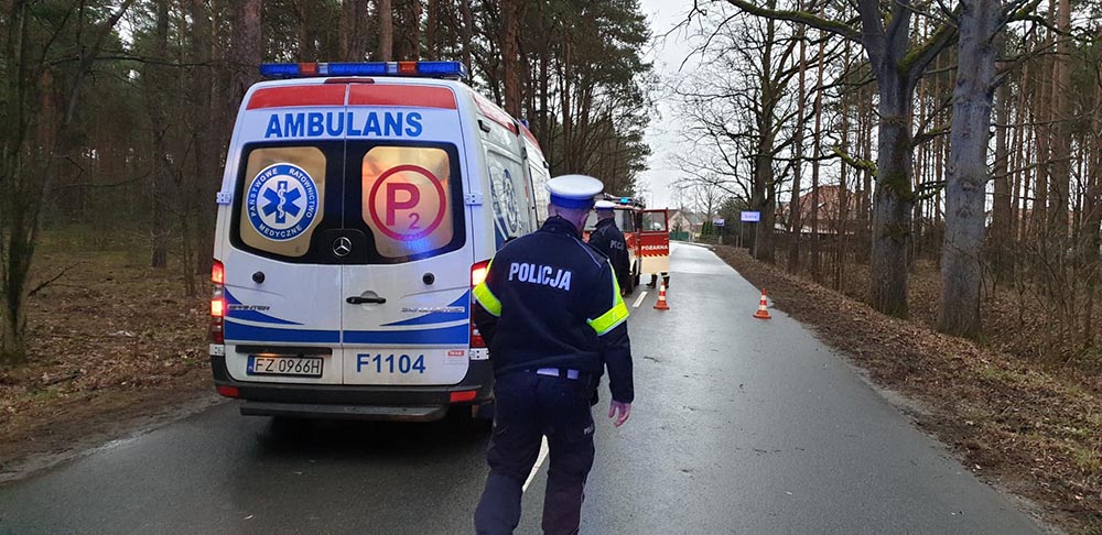 Na miejsce dojechały wozy straży pożarnej zawodowej oraz OSP Sucha. Dojechała ekipa karetki pogotowia ratunkowego i zielonogórska drogówka. Siła uderzenia w drzewo była duża. Przód hondy został zmiażdżony.