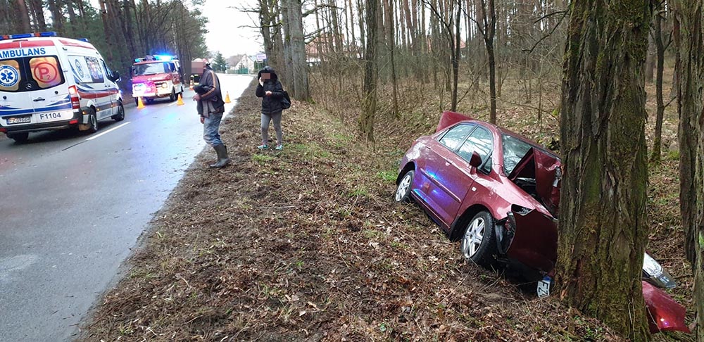 Do wypadku doszło w piątek, 15 marca, na drodze z Drzonkowa w kierunku mejscowości Sucha. Honda wypadła z drogi i uderzyła w drzewo. Kierująca została przewieziona do szpitala.