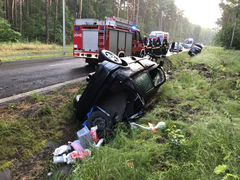 Na miejsce wypadku przyjechały służby ratunkowe. Ekipa karetki pogotowia ratunkowego zajęła się poszkodowanymi. Na szczęście kobietom jadącym punto nic się nie stało. Do szpitala został zabrany kierowca golfa. Doznał urazu nogi. Dobrze, że miał zapięte pasy, które uratowały go podczas dachowania.