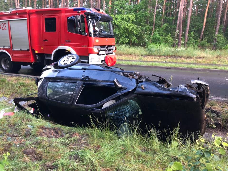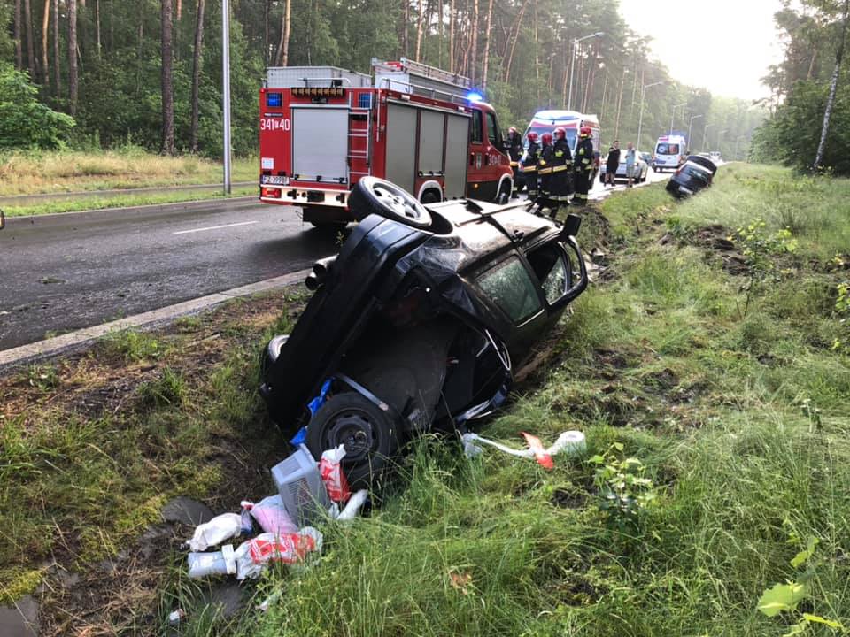Kierowca volkswagena golfa podczas jazdy zasnął za kierownicą. Na ul. Pileckiego uderzył w fiata punto. Oba samochody wypadły z drogi. Golf dachował.