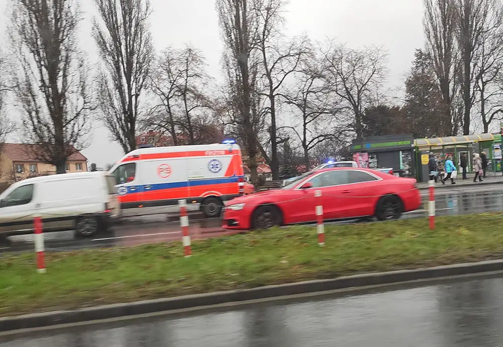 Na zdarzenie najechali policjanci. Na miejsce została również wezwana ekipa karetki pogotowia ratunkowego. Kierująca peugeotem została przewieziona do szpitala na badania. Kobieta jest w ciąży. Samochody uczestniczące w zdarzeniu stoją na przystanku autobusowym. Na ulicy nie ma utrudnień w ruchu.
