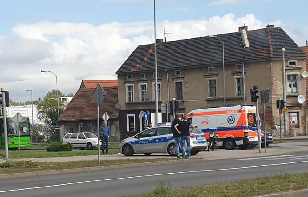Motocyklista wjechał na przejście dla pieszych na czerwonym świetle i potrącił rowerzystę jadącego zielonogórskim rowerem miejskim. Mężczyzna prawidłowo przejeżdżał przez przejazd dla rowerzystów na świetle zielonym. Na miejsce wypadku przyjechała ekipa karetki pogotowia ratunkowego oraz zielonogórska policja. Ranny rowerzysta został karetką przewieziony do szpitala.