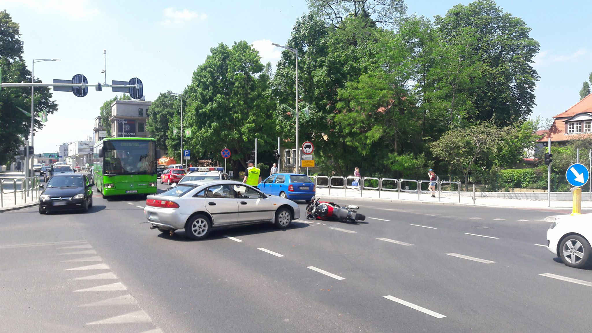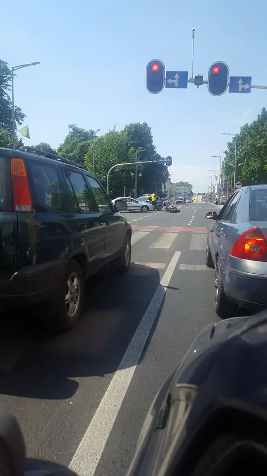 Na miejscu wypadku jest zielonogórska policja. – Trwa ustalanie jak doszło do zderzenia motocyklisty z samochodem osobowym – mówi podinsp. Małgorzata Stanisławska, rzeczniczka zielonogórskiej policji. Motocyklista został zabrany do szpitala przez karetkę pogotowia ratunkowego.Są utrudnienia w ruchu. Na jezdni leży rozbity motocykl i stoi samochód, który się z nim zderzył.