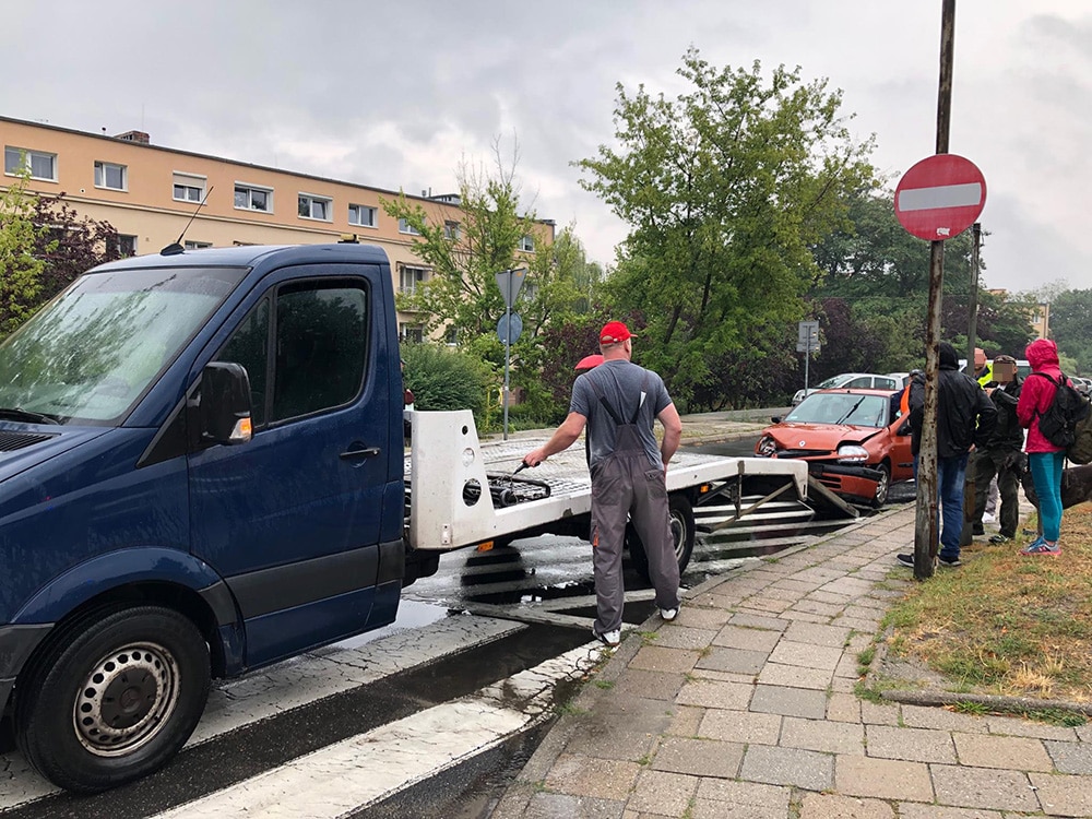 Na miejsce wypadku dojechała również karetka pogotowia ratunkowego. Policjanci ustalają jak doszło do zdarzenia. Prawdopodobnie kierująca fordem wyjeżdżała z ul. Wazów i wjechała prosto pod renault. Uczestnicy zderzenia są w karetce.