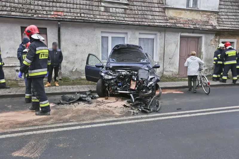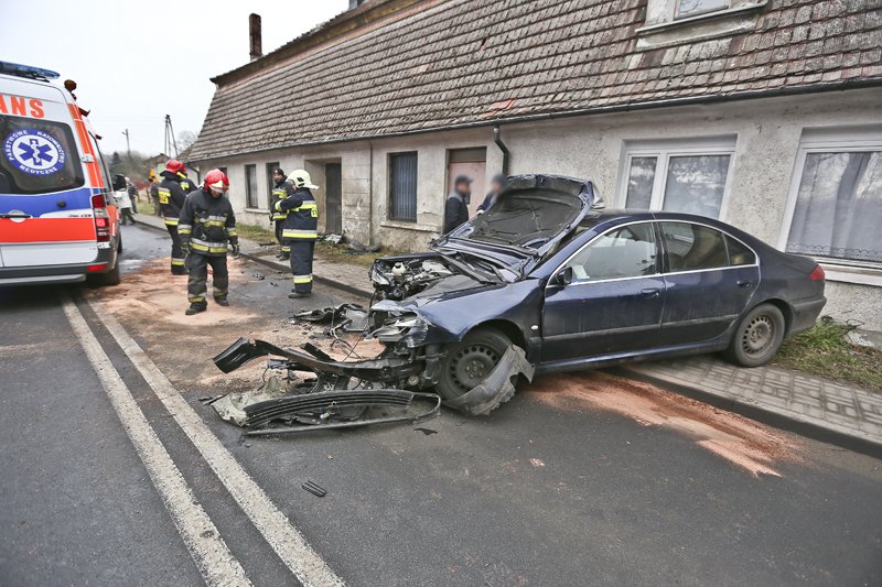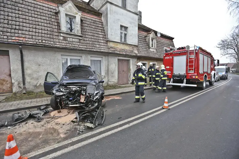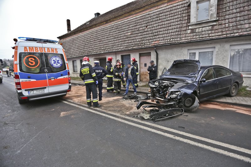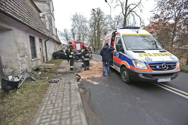 Do poważnego wypadku doszło w sobotę, 17 lutego, na zakręcie ul. Żagańskiej w Ochli, dzielnicy Zielonej Góry. Kierujący peugeotem wypadł z drogi i roztrzaskał się o ścianę budynku. Pasażerka została przewieziona do szpitala. Kierowcy nic się nie stało. Policjantom powiedział, że jechał z prędkością około 60 km/h.