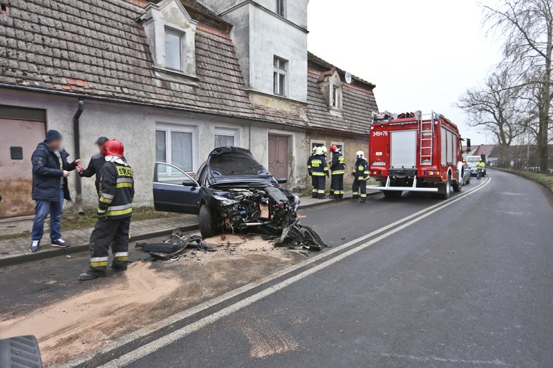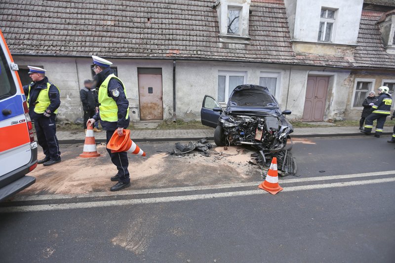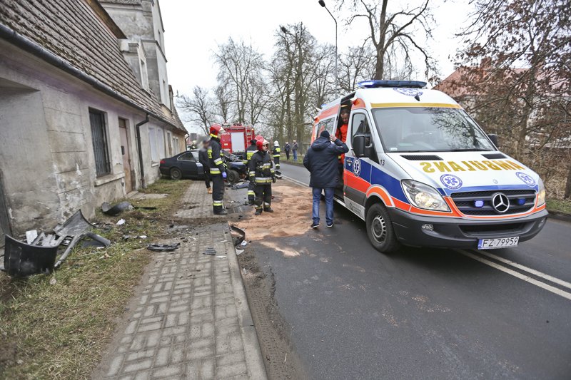 Kierujący peugeotem jechał ul. Żagańską w kierunku Zielonej Góry. Na zakręcie rozpędzony peugeot wypadł z drogi i uderzył w ścianę domu stojącego tuż przy chodniku. Samochód po uderzeniu odbił się i okręcił zatrzymując kilkanaście metrów dalej. – Kiedy podbiegliśmy do rozbitego auta, na przednim fotelu była nieprzytomna kobieta – opowiadają nam świadkowie wypadku.