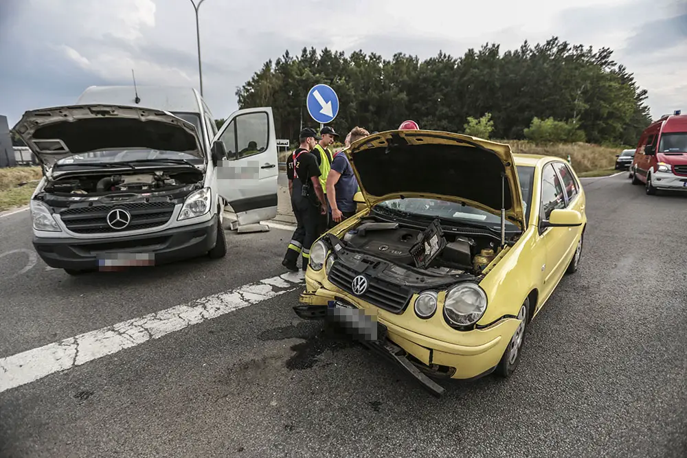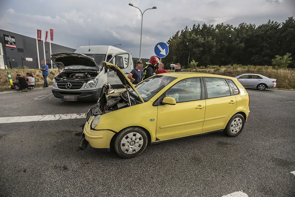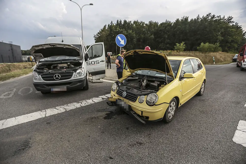 W volkswagenie wystrzeliły przednie poduszki powietrzne. Na przednim siedzeniu kierująca przewoziła w foteliku półroczne dziecko. Mimo widocznego znaku informującego o tym, że trzeba wyłączyć poduszkę, kierująca tego nie zrobiła.