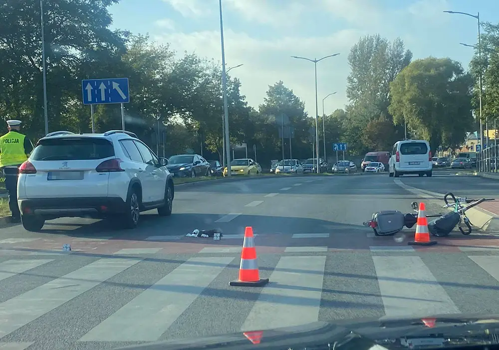 Do wypadku doszło w poniedziałek, 11 października, na przejeździe dla rowerów na al. Zjednoczenia. Na miejscu jest zielonogórska policja. Są również utrudnienia w ruchu.