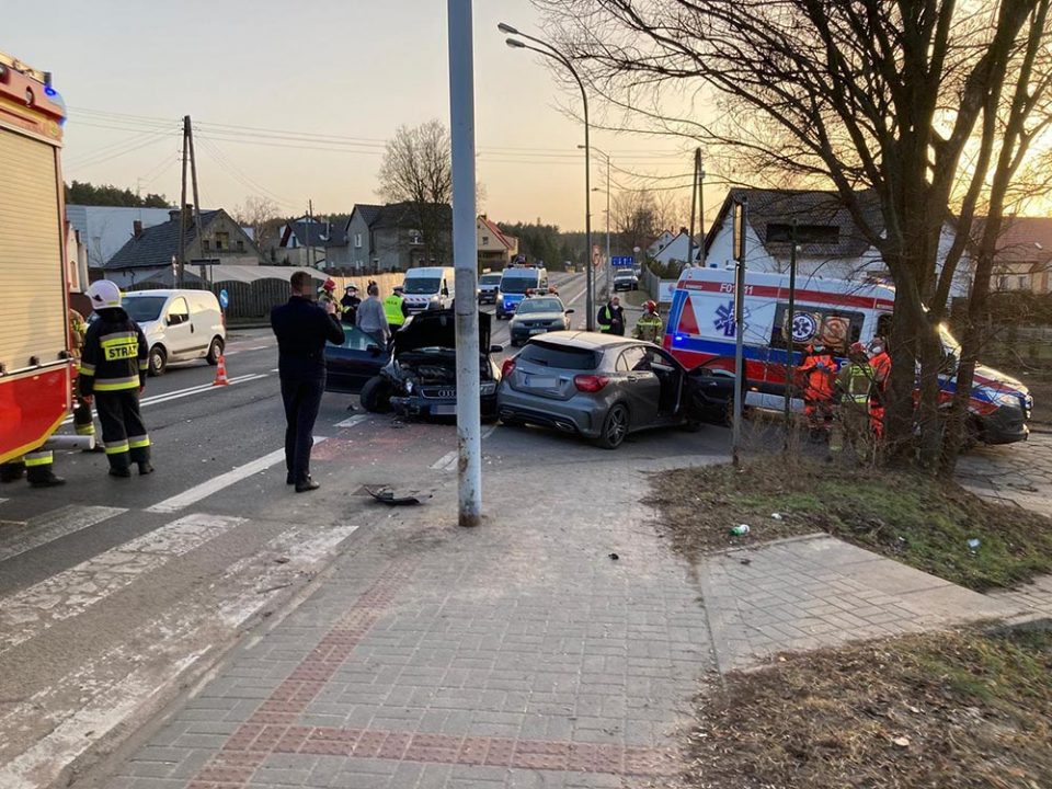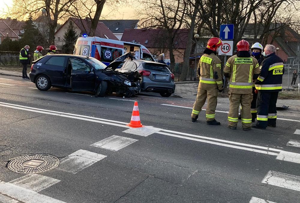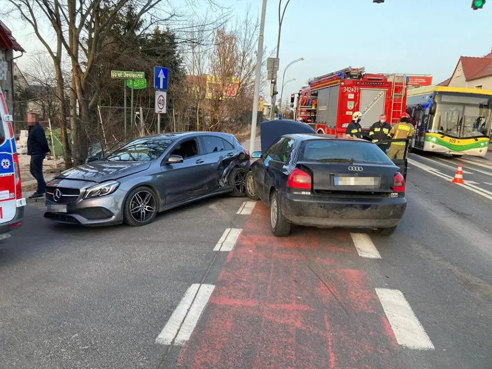Do wypadku doszło we wtorek, 23 lutego, na ul. Poznańskiej. Zderzyły się audi i mercedes. Dwie ranne osoby zostały zabrane do karetki pogotowia ratunkowego.