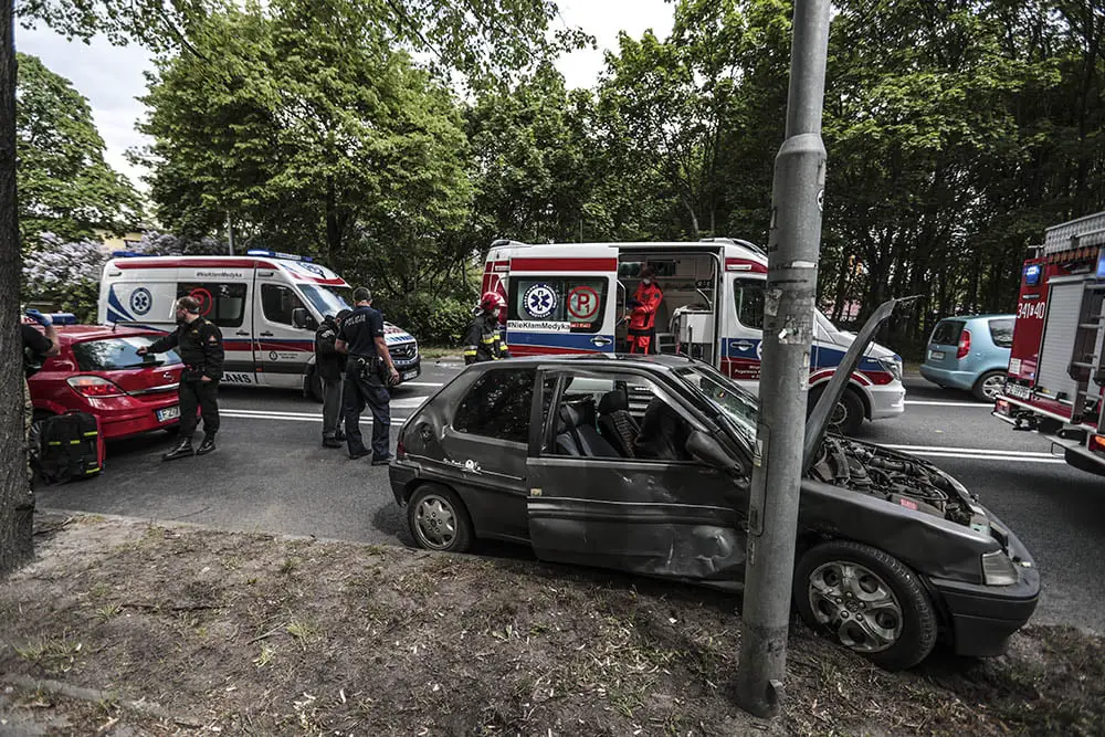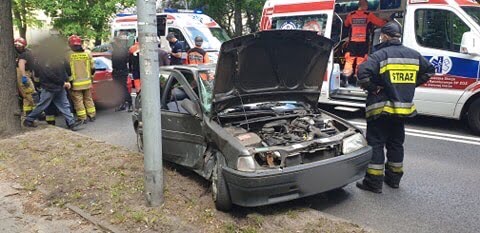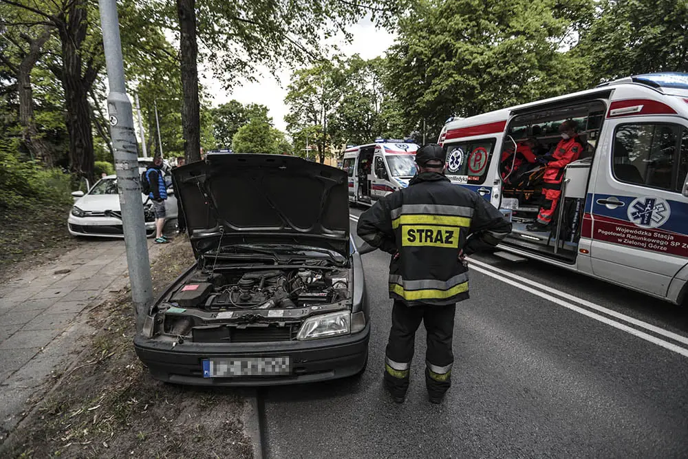 Kierujący peugeotem starszy mężczyzna wyjeżdżał z ul. Chmielnej. Zrobił to tak nieostrożnie, że wjechał prosto pod jadącego ul. Wrocławską volkswagena prowadzonego przez kobietę. W rezultacie volkswagen uderzył w bok peugeota, którego po zderzeniu obróciło na jezdni