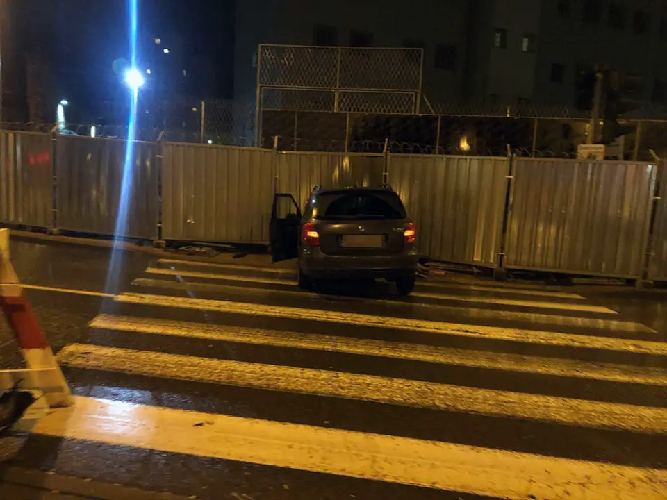Na miejscu wypadku jest już straż pożarna oraz zielonogórska policja. Skoda jest wbita w ogrodzenie aresztu śledczego, w którym trwa remont muru. Volkswagena stoi obok na chodniku. Policjanci wyjaśniają jak doszło do zdarzenia.
