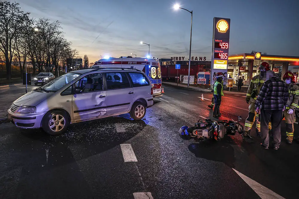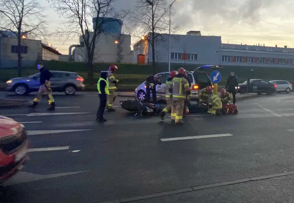 Do wypadku doszło w poniedziałek, 14 grudnia, na al. Zjednoczenia. Kierujący volkswagenem zderzył się ze skuterem. Ranny kierowca skutera został karetką przewieziony do szpitala.