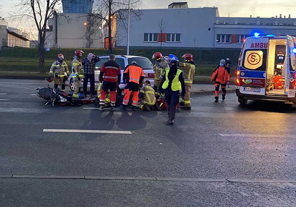 Na miejsce wypadku szybko przyjechały służby ratunkowe oraz zielonogórska policja. Ranny kierowca skutera została zabrany do karetki pogotowia ratunkowego. Doznał między innymi poważnego złamania nogi. Ranny mężczyzna karetką pogotowia ratunkowego został przewieziony do szpitala.