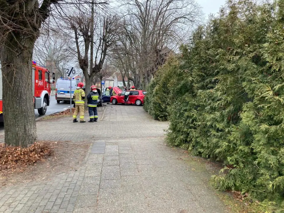 Do zdarzenia doszło przed godz. 10.00. Zderzyły się ford i volkswagena. Po zderzeniu volkswagen wypadł z drogi na chodnik i ma mocno rozbity bok. Na miejsce wypadku szybko dojechały wozy staży pożarnej. – Strażacy zabezpieczyli miejsce zdarzenia – mówi st. kpt. Arkadiusz Kaniak, rzecznik zielonogórskiej straży pożarnej.