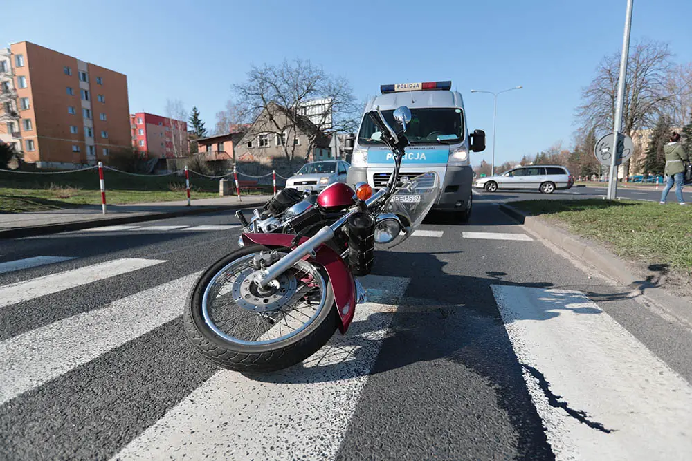 Na ul. Łużyckiej pracują policjanci. Motocyklista został zabrany do karetki i odwieziony do szpitala.