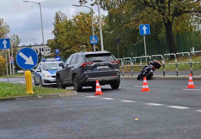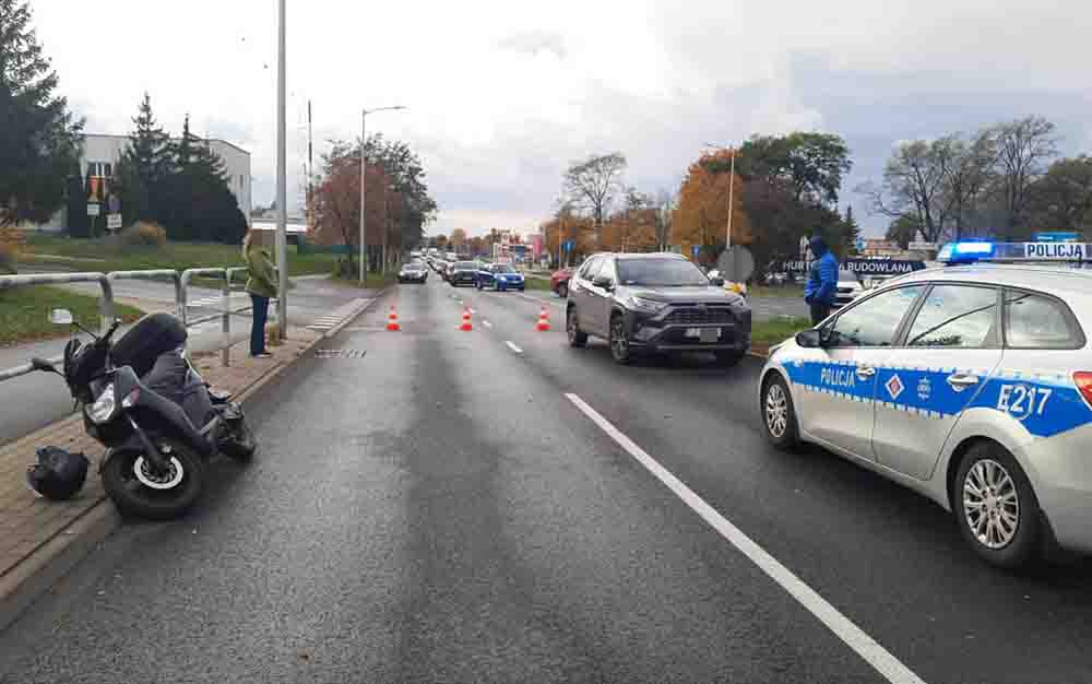 Winnym spowodowania wypadku jest kierujący Toyotą. – Wyjeżdżał z terenu giełdy, przeciął drogę w kierunku Przylepu i na jezdni w kierunku wiaduktu uderzył w motorowerzystkę – mówi podinsp. Katarzyna Świerkowska-Teska, naczelnik zielonogórskiej policji. Kobieta ma podejrzenie urazu nogi.