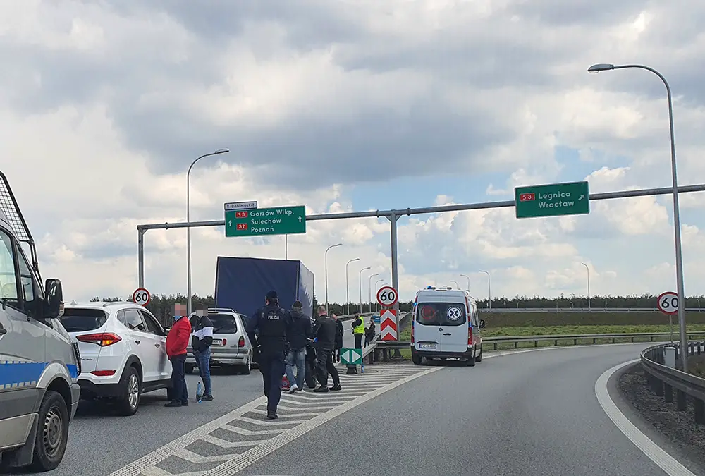 Do wypadku doszło w sobotę, 8 maja, na trasie Północnej na zjeździe na S3. Renault uderzyło w tył busa.
