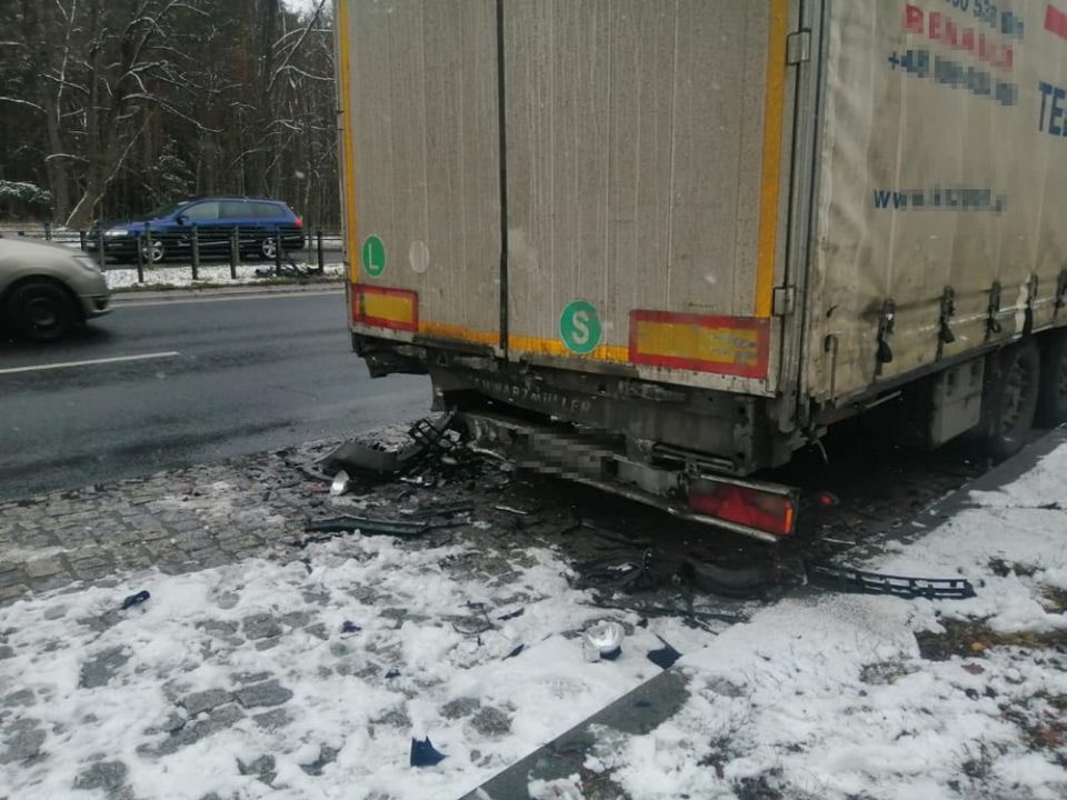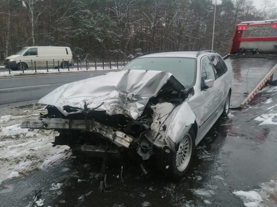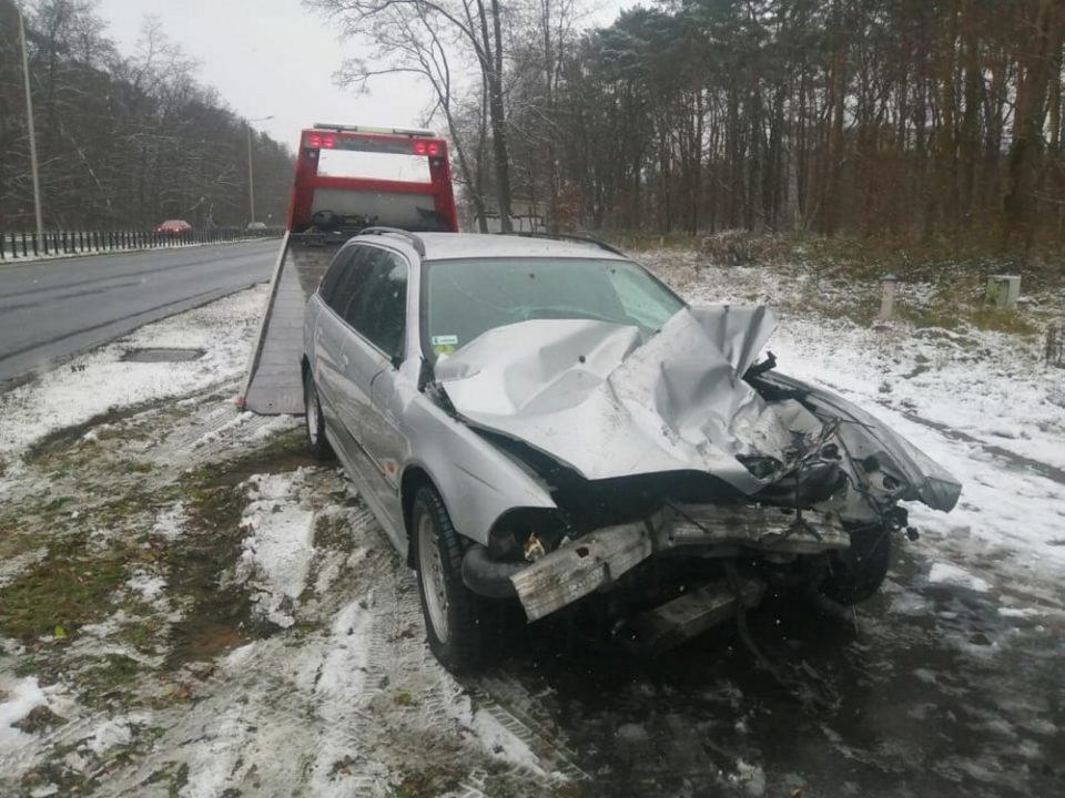Do wypadku doszło w sobotę, 4 grudnia, na Trasie Północnej. Zderzyły się tam ciężarówka i bmw. Na drodze w Nowym Kisielinie samochód uderzył w barierki.
