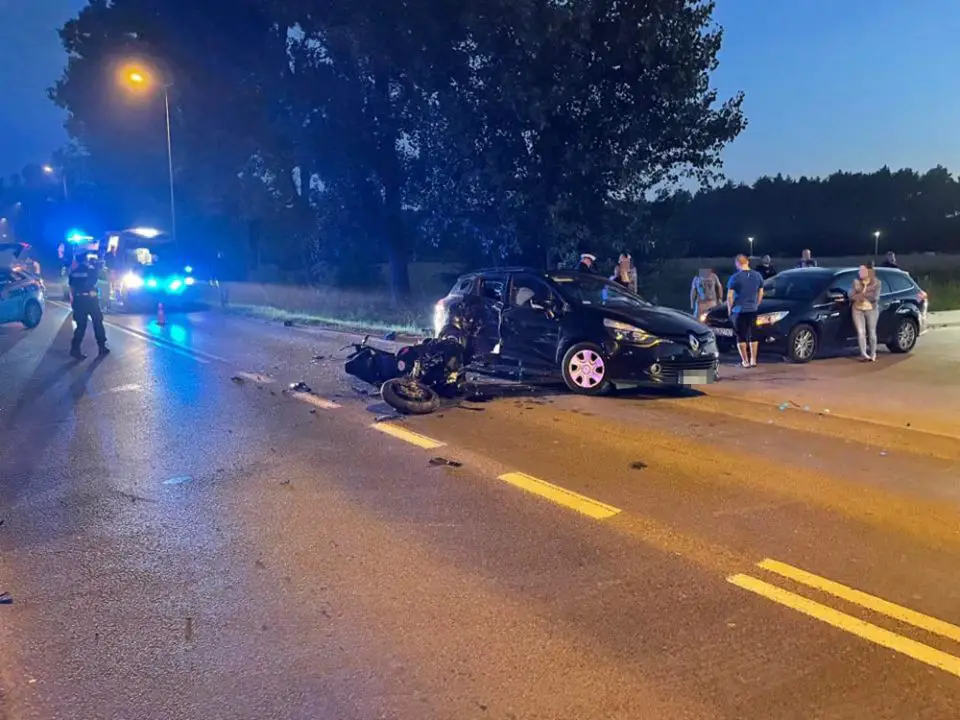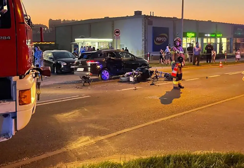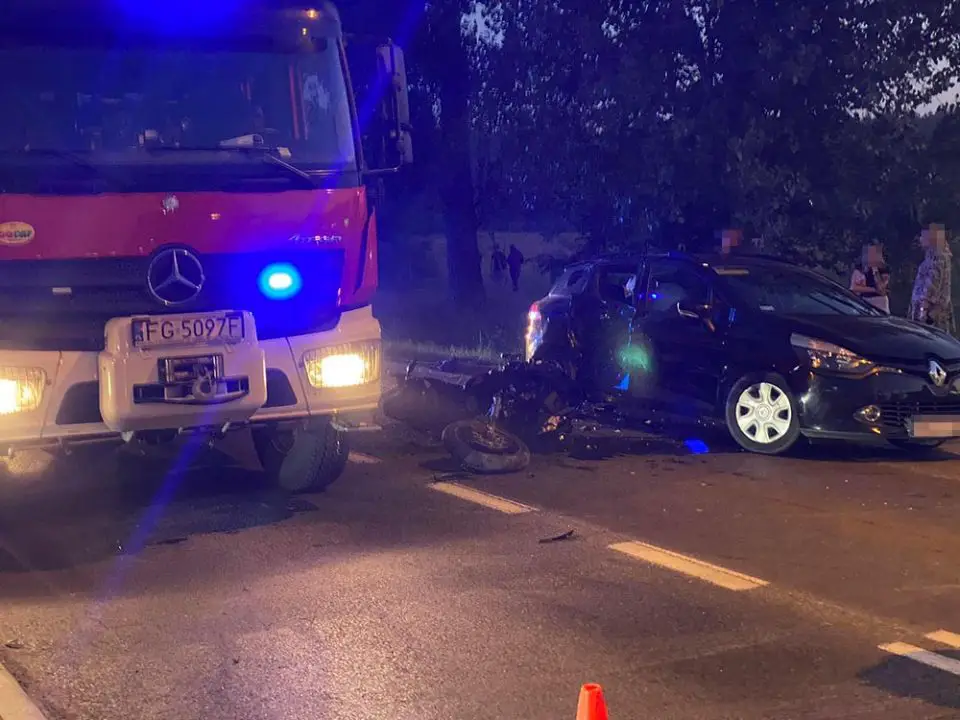 Godz. 20.00 Motocyklista zderzył się z renault. Świadkowie mówią, że bardzo szybko jechał. – Po uderzeniu przeleciał przez samochód. Na drodze leżał nieprzytomny – mówi nam świadek wydarzeń.