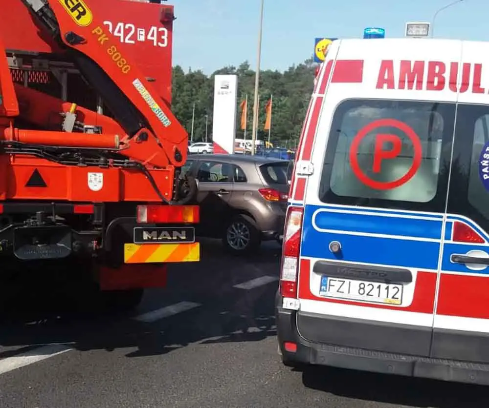 Na miejsce wypadku szybko dojechały wozy straży pożarna, karetka pogotowia ratunkowego oraz policja. Zderzyły się renault i mitsubishi. Osoby uczestniczące w wypadku zostały zabrane do karetki. Na drodze są poważne utrudnienia w ruchu.