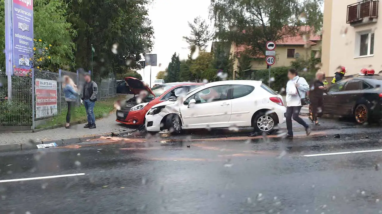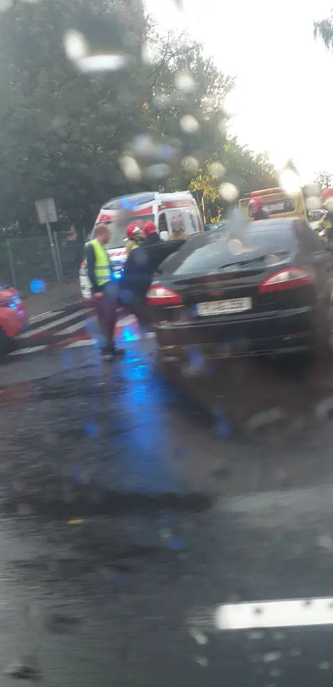 Zderzyły się trzy samochody. Na miejscu są służby ratunkowe. Do zderzenia doszło kiedy kierujący fordem skręcał z ul. Lwowskiej w ul. Piaskową. Wtedy wjechał pod jadącego w kierunku ul. Wrocławskiej peugeota. Po zderzeniu pojazdy wpadły na drugiego peugeota, który wyjeżdżał z ul Piaskowej.