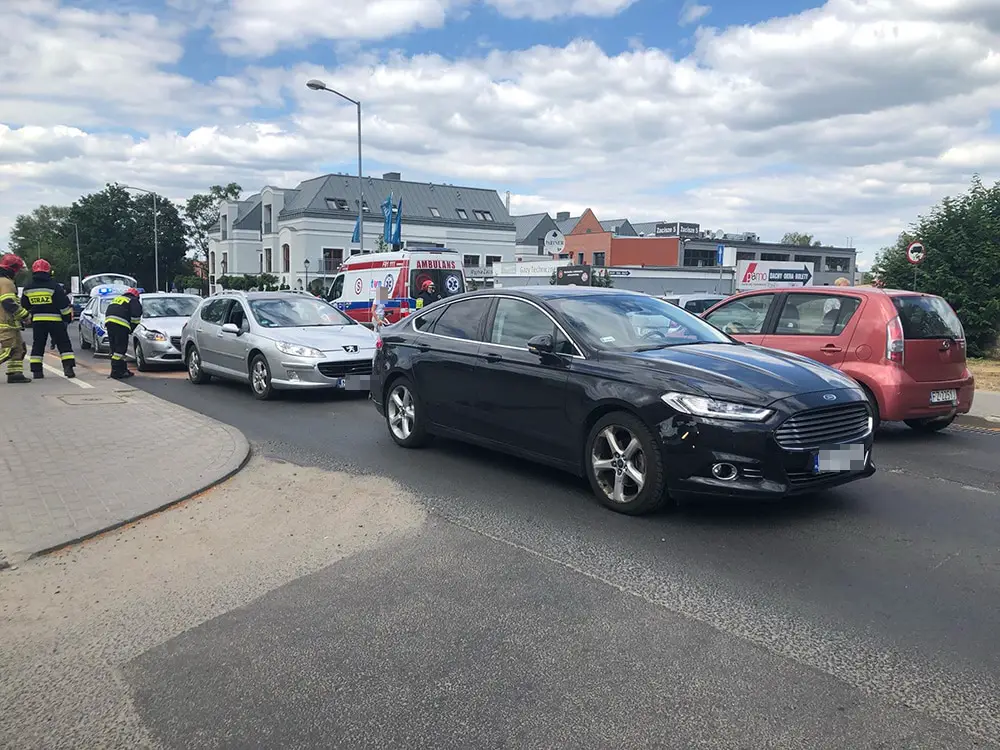 Do zderzenia trzech samochodów doszło na pasie w kierunku skrzyżowania z ulicami Wyszyńskiego i Wojska Polskiego. To klasyczne najechanie na tył. Zderzyły się dwa peugeoty i ford.