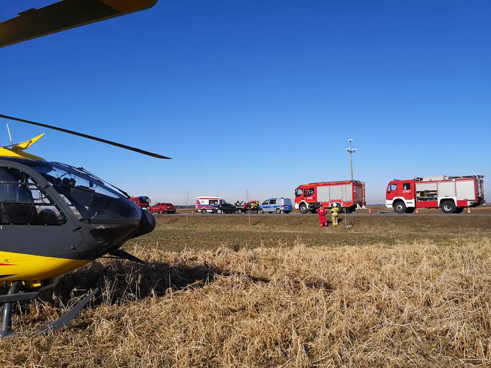 Na miejsce wypadku szybko dojechały wozy zawodowej straży pożarnej oraz OSP Templewo. Wylądował również śmigłowiec lotniczego pogotowia ratunkowego.