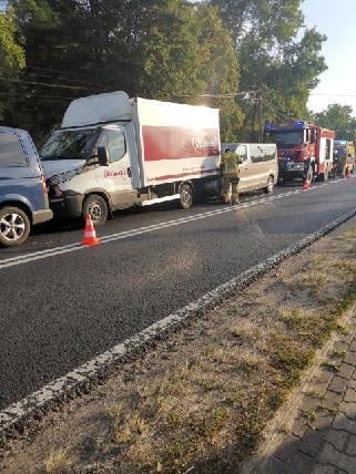 Zderzyły się trzy samochody dostawcze i jeden osobowy. Na miejsce zdarzenia szybko dotarł zastęp gorzowskich strażaków.