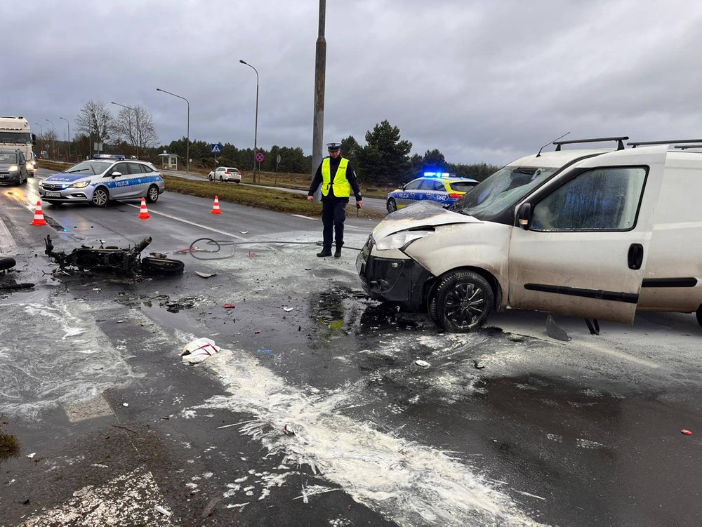Do poważnego wypadku doszło w środę, 19 listopada, w Pile. Na ulicy Wojska Polskiego doszło do zderzenia samochodu z motocyklem. Po zderzeniu motocykl spłonął.