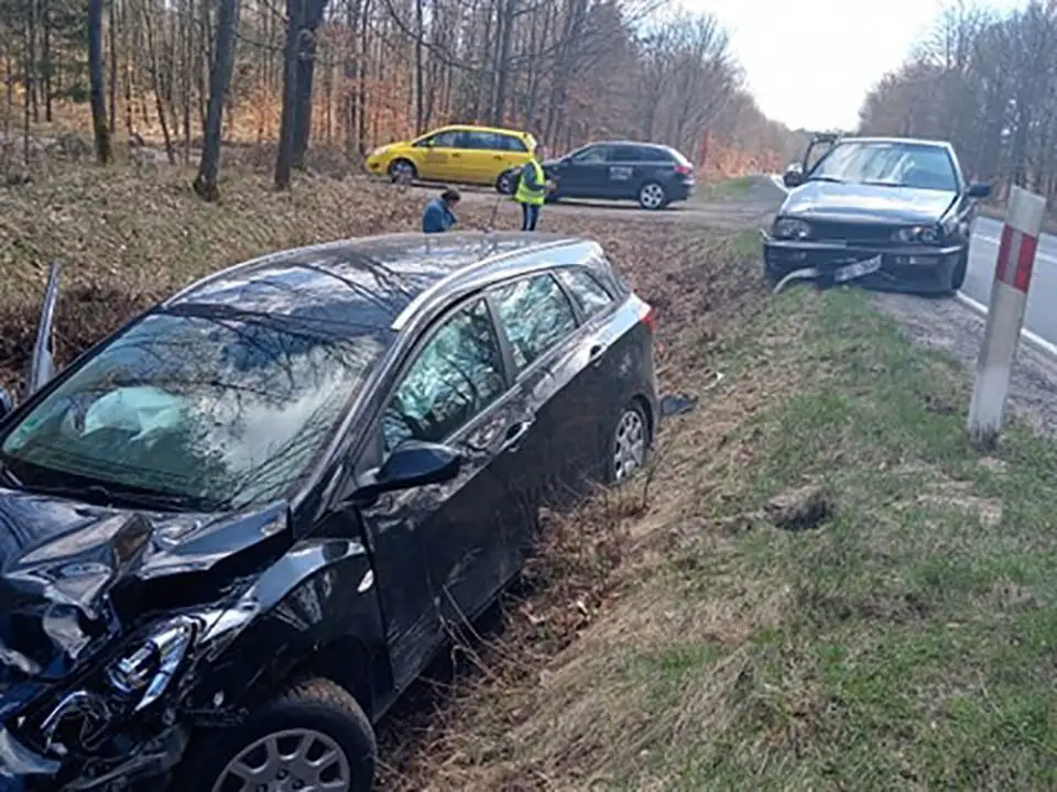 Wtedy w hyundaia uderzył kierujący volkswagenem golfem, który wyprzedzał samochód. Po zderzeniu oba samochody wypadły z drogim.