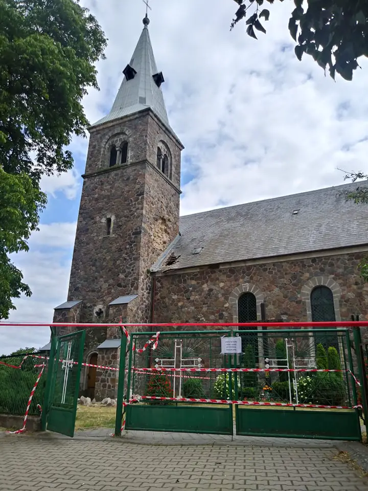 Do zdarzenia doszło prawdopodobnie około godz. 5.00 nad ranem. Z wieży kościoła oderwała się część kamiennej elewacji. Kamienie runęły na dół uszkadzając dach. Na szczęście nikomu nic się nie stało. Dojście do kościoła zostało zabezpieczone taśmami oraz informacjami o zagrożeniu.