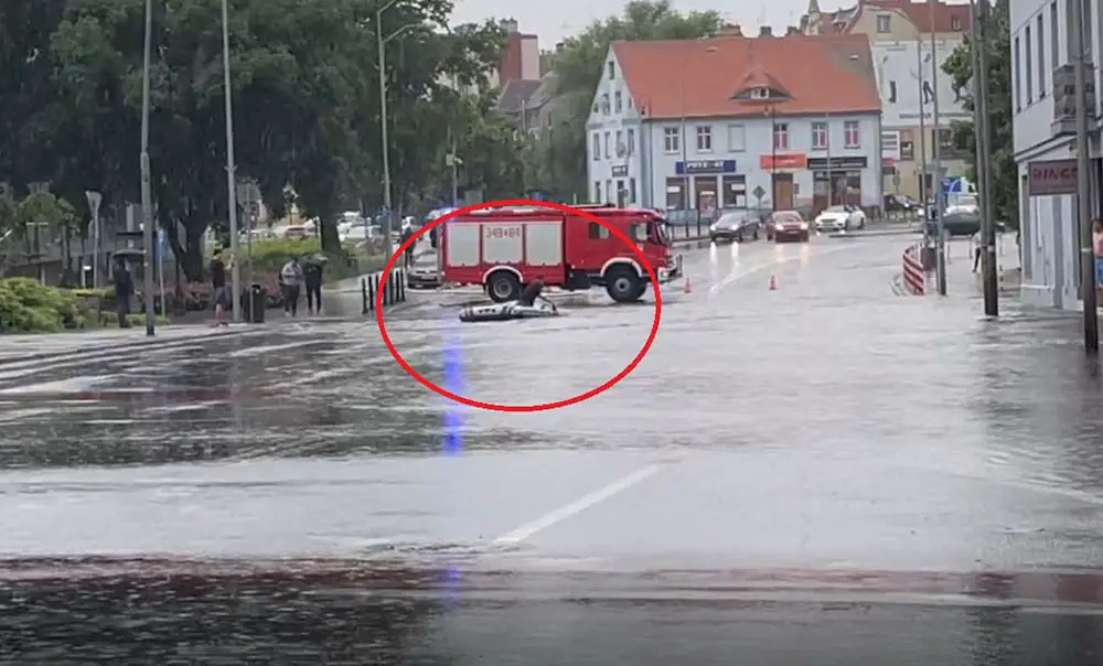 Fatalna sytuacja była na drogach w mieście, zostały zalane. Na ul. Wojska Polskiego pojawił się… ponton.