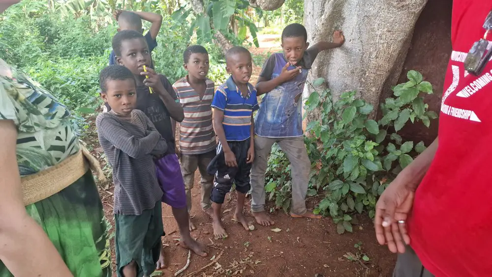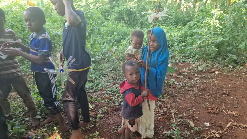 Po chwili wysiadamy zobaczyć wioskę i nagle z różnych zakamarków i krzaków wybiegają dzieci. Mają w rękach kijki z wiatrakami zrobiony z plastikowych butelek. Jedno na kijku ma przywiązaną plastikową pokrywkę. Tym się bawią, bo nic innego nie mają. Byliśmy przygotowani i wyciągamy mazaki oraz kredki. Znikają w kilka sekund. Dzieci dosłownie wyrywały je rąk nam i sobie. To była walka. Wyrwę to mam, nie wyrwę odejdę z niczym. Smutne. To tylko mazaki. Ruszamy dalej, a dzieci biegną za samochodem. Biegną z nadzieje, że coś jeszcze dostaną. Wyciągają ręce w geście proszącym. Biegną ile sił. – Wiem, nie ostrzegłem. Ale taki właśnie jest Zanzibar. To nie hotele, bo tam jest luksus nie do osiągnięcia przez nas. My tak żyjemy – mówi przewodnik. wyjeżdżamy z buszu. Po drodze jedno z biegnących dzieci potykając się uderzyło głową w samochód. Kierowca zatrzymał się i odgonił resztę. Mały wstał zapłakany, nic mu się na szczęście nie stało. Kierowca odjechał.