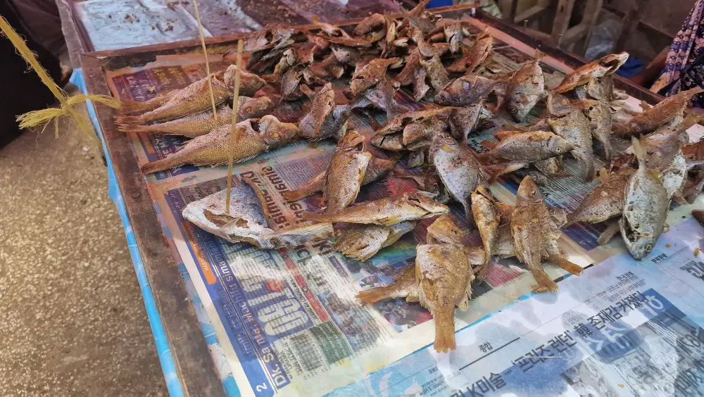 Dalej jedziemy już tylko na okoliczny bazar, na który turyści nie docierają. Mamy już dość i chcemy wracać do hotelu. Wszechobecna nędza nasz przytłoczyła. Bieda jest wręcz nie do opisania. Jest okrutna w tak pięknym kraju. Na bazarze najpierw uderza smród ze stoisk z resztkami ryb. Tak resztkami, bo tutaj handluje się wszystkim. Ktoś „krzykaczką” reklamuje to, co ma do sprzedania. Wszędzie pełno różnych owoców. Tutaj kupują je hotele dla gości. W klatkach chudziutkie kurki, dosłownie mniej iż połowa naszych. Rosną tylko na tym, co znajdą w ziemi. Nikt ich nie karmi i mało kto kupuje, bo mięso jest za drogie. Na kocach rozłożonych na ziemi wszelkiej maści małe radyjka, setki kapci, butów, plastikowych zabawek itp. Mydło i powidło. Obok grillowana kukurydza i smażone ryby. Nabite na kijki czekają na klienta, ale mało kto kupuje. Za drogo.